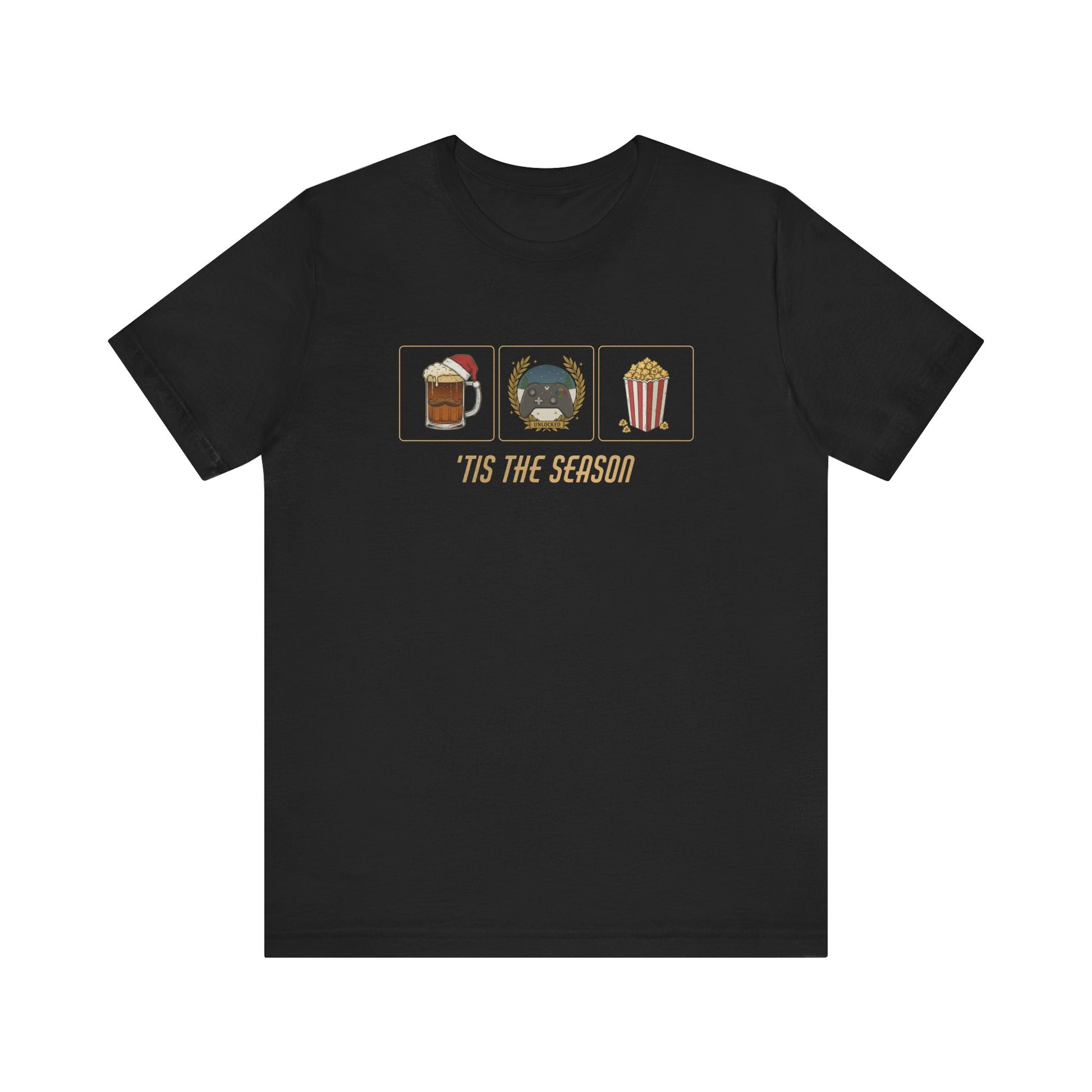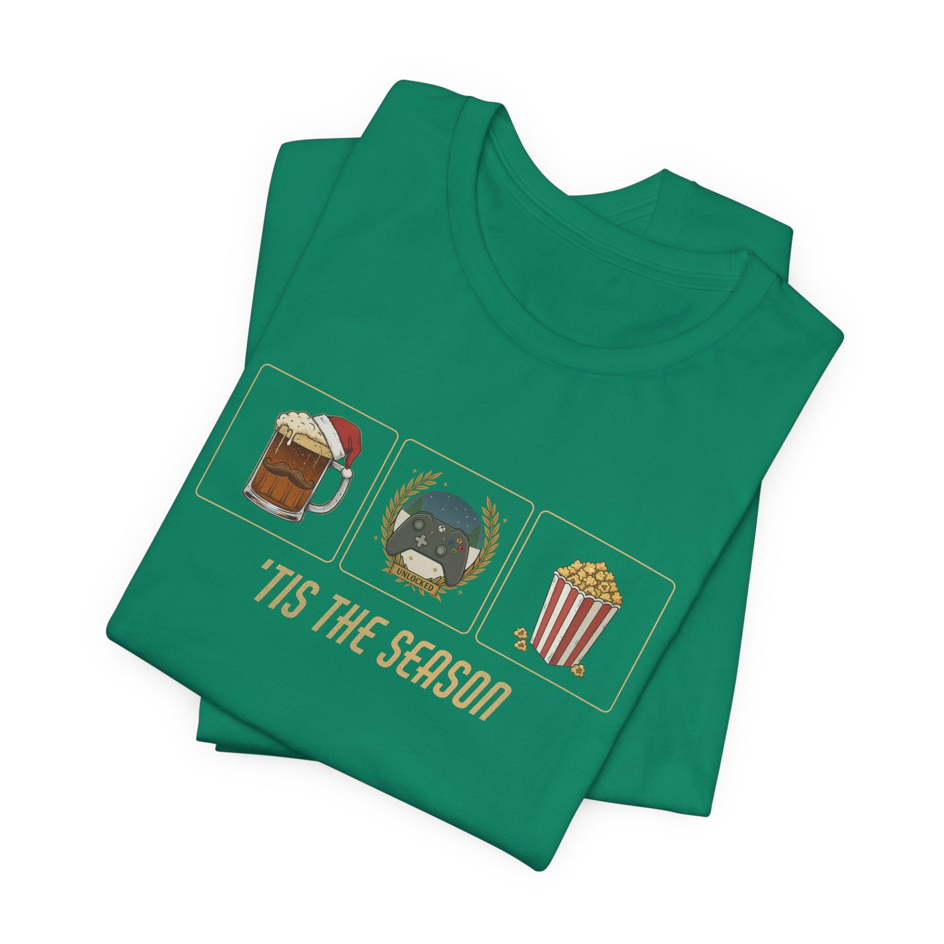 Tis the Season for real relaxation. This graphic captures the essential trio for a perfect Christmas break. It's an ideal gift for any gamer who looks forward to uninterrupted time with a controller, cold drink, and a tub of popcorn.